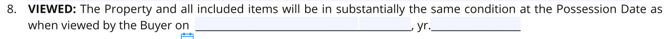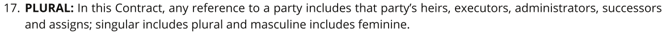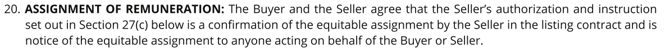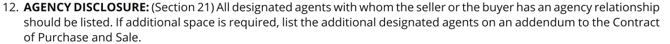 This section addresses the assignment of the contract to other parties. Buyers and agents should recognize that even adding a family member for financing support—as is common with first-time home buyers—may be treated as an assignment and therefore requires the seller’s consent. If this scenario is anticipated, it should be dealt with at the time of offer by including a specific clause permitting the assignment, along with completing the Notice to Seller Regarding Assignment Terms form.