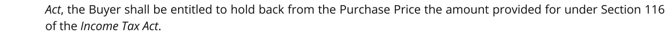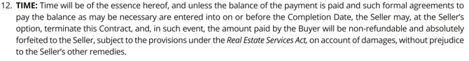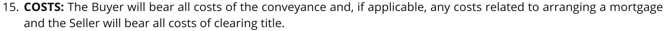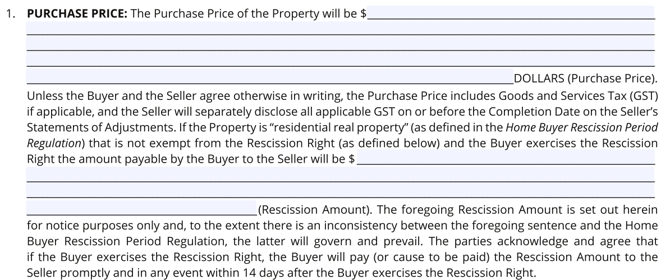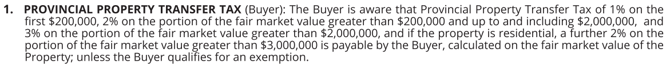 This clause specifies that the buyer is aware that property transfer tax is payable on the purchase. This is a useful section of the contract to point your clients to if they are curious what this amount will be.