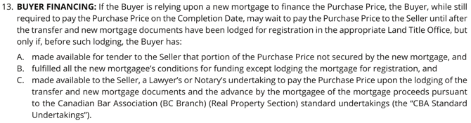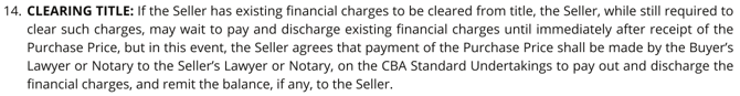 This clause outlines the completion process, and is important for your clients to understand. Completion is the legal transfer at the Land Title Office. In practice, funds are paid into trust with the buyer’s lawyer or notary, who coordinates registration and payment.