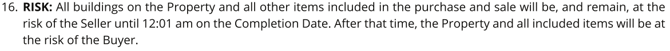 This section relates to the buyer’s lender or insurer needing access to the property. In some cases, lenders or insurers may require entry even after conditions have been removed. To avoid complications, this should be addressed at the time of offer by adding a term such as: “The buyer’s lender or insurer may access the property if required for insurance or lending purposes.”