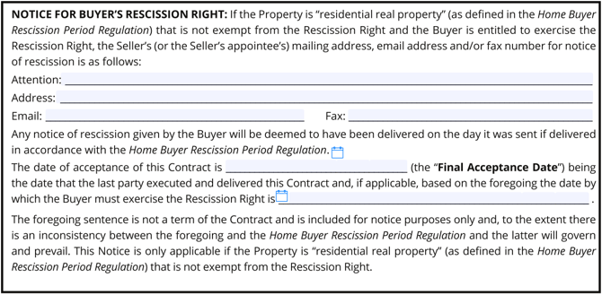 Clause 23: Disclosure of the Buyer's Rescission Right