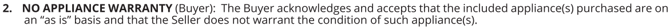 This section signals that the seller will not be guaranteeing the working order of any equipment. It is important that the buyer reads this carefully. It is possible to submit a term that negates this clause, but must be done at the time of offer.