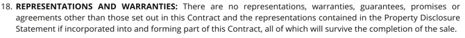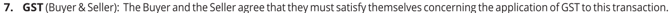 This clause sets out the additional costs that accompany a real estate transaction and reminds buyers to account for them in their budget. Among these costs, the Goods and Services Tax (GST) is particularly important. The clause clarifies that GST is deemed to be included in the purchase price unless the parties have agreed otherwise. Listing agents need to make sure sellers are aware of this.