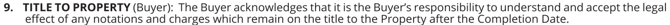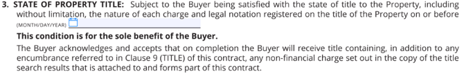 This section is much the same as noted in Clause 9 of the CPS. It signals that the buyer is aware that is their responsibility to understand the nature of the various encumbrances and charges on title.