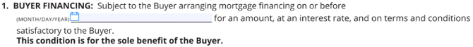 This condition allows the buyer to confirm their ability to secure financing for the property. It is commonly set for seven days after acceptance, though the timeline can be adjusted depending on the buyer’s circumstances and lender requirements.