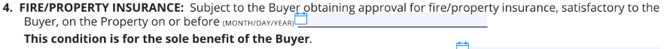 Details when insurance should be arranged by the buyer. In scenarios where you are unsure whether insurance can be arranged for a property, an insurance condition may be prudent.