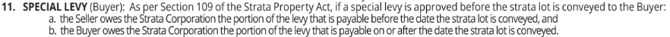 Sample: If a special levy is approved by the strata corporation, or applicable section, after this Contract is entered into but before the Completion Date, the Seller will, on the Completion Date, credit the Buyer with the entire portion of the special levy that the Buyer is obligated to pay under the Strata Property Act.