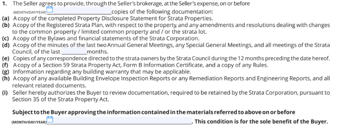 Buyers often include a condition to review the Form B to confirm that the information is acceptable before proceeding.