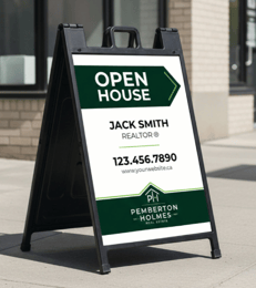 Professional signage is critical for your listings and personal visibility. We offer the following sample signage:
