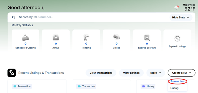 Your new Transaction file will open with its own checklist — your listing progress is preserved.