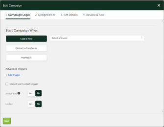 (a) Choose a Start Trigger: Start triggers define when the campaign activates. Common options include: