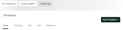 BoldTrail allows you to create and manage templates for emails, texts, tasks, calls, webhooks, and voicemail drops. Templates can be built from the Templates tab or directly within a campaign you are creating.