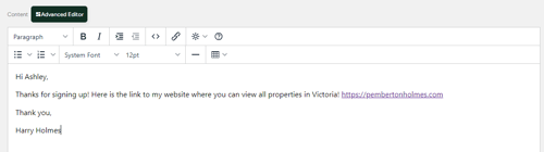Tip: Pemberton Holmes already has a “New Listing” email template available under New Listing – Pemberton Holmes Template.