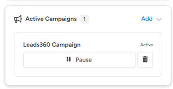 (a) Individually: To add a campaign to just one contact, start by navigating to that contact’s profile. On the right-hand side of the screen, you will see a section called Active Campaigns. Click Add, choose the campaign you’d like to assign, and it will start immediately. This is especially useful if you want to customize the timing or apply a specific campaign to a unique lead.
