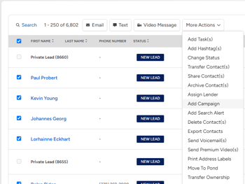 (1) Automatically: Automatic assignment happens when you build the logic inside a campaign to filter and qualify contacts. For example, you might set a rule so that all new buyer leads are automatically placed on a 14-day follow-up campaign. Once the campaign is active, BoldTrail will handle the assignment in the background, saving you time and ensuring no contacts are missed.